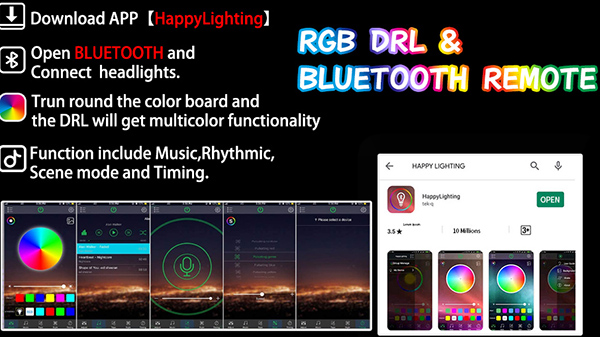 This app rgb headlight replacement compatiable with Ford Bronco 2020-2025 Year.